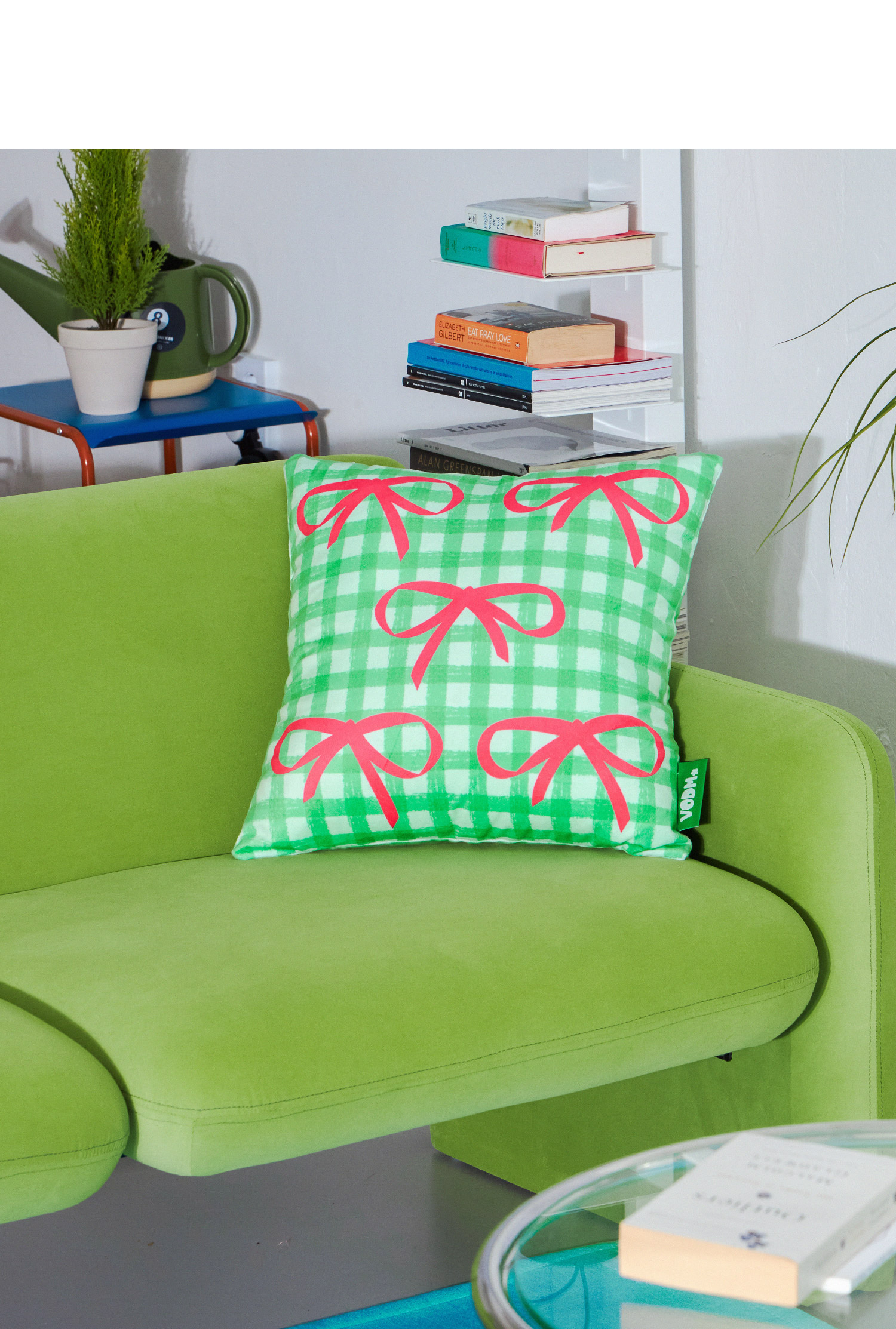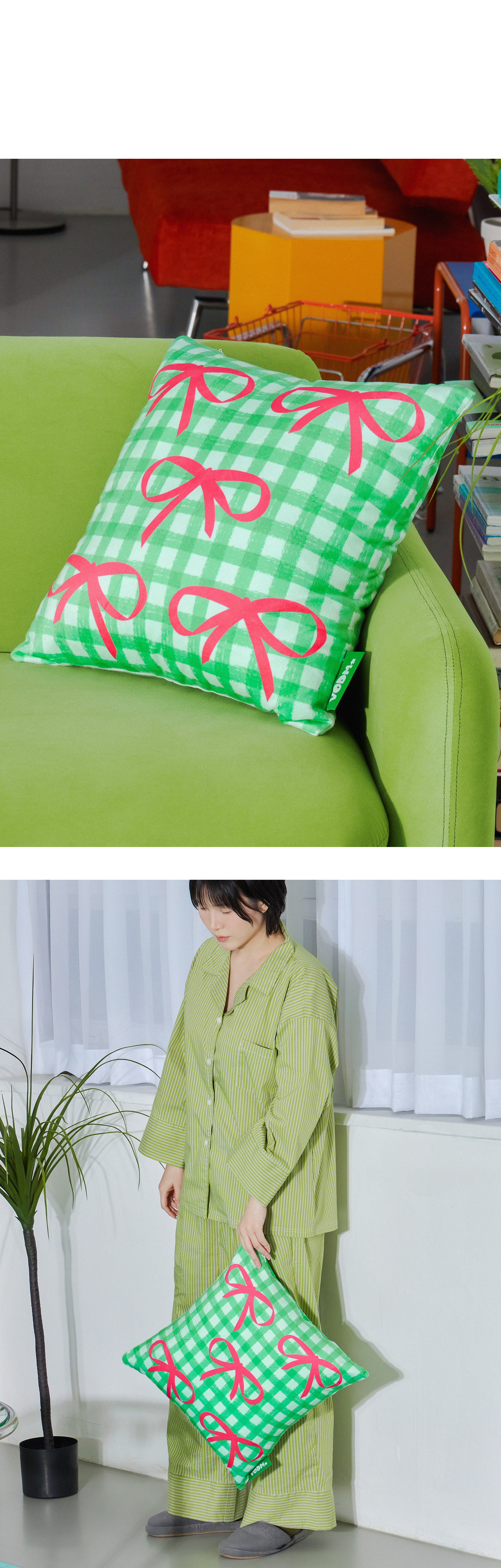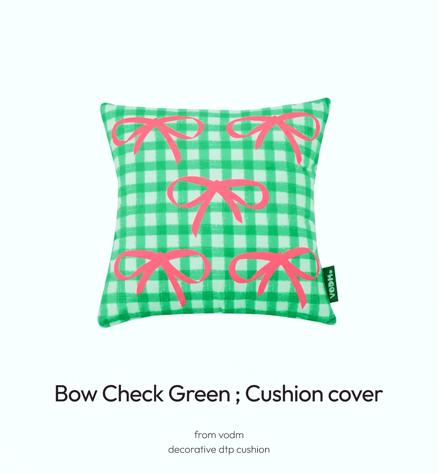 Bow Check ; Green Cushion Cover