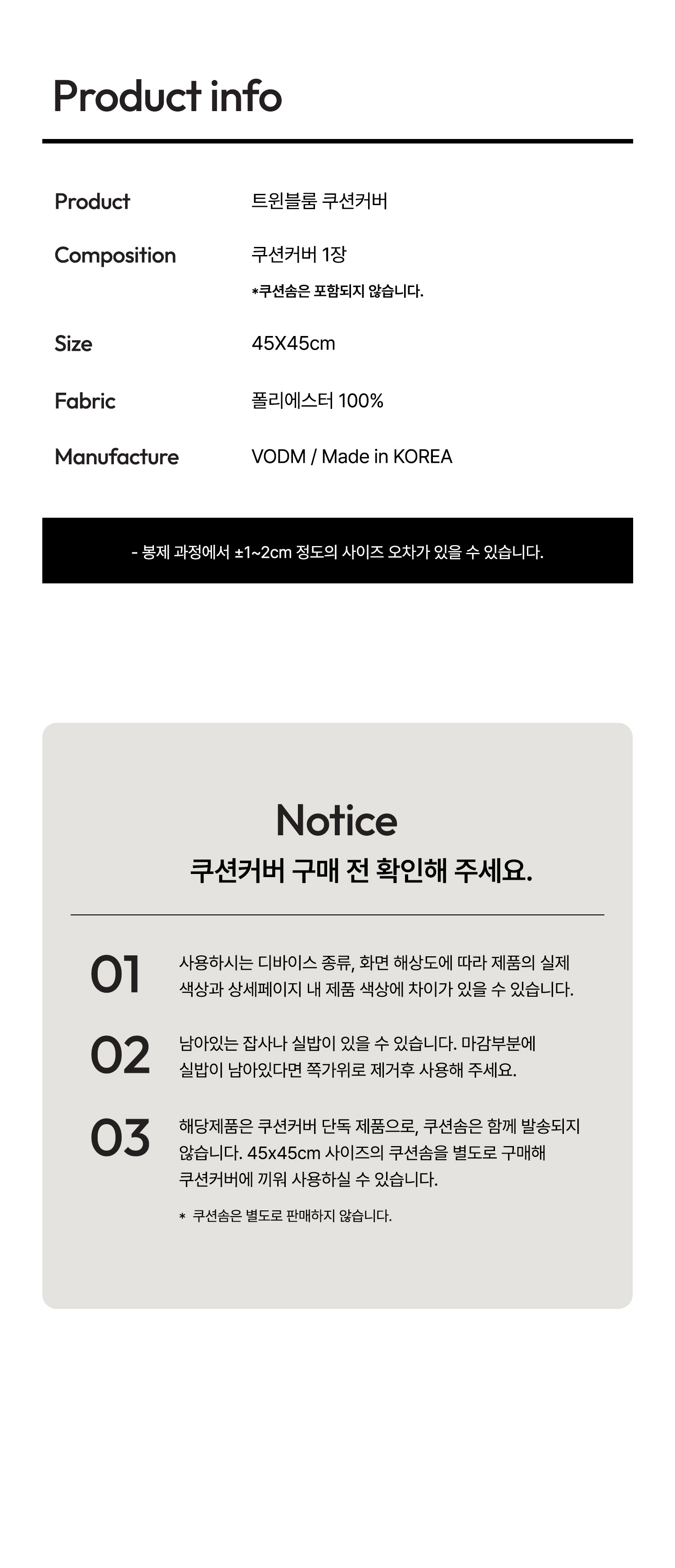 VODM가 제안하는 쿠션 커버입니다.