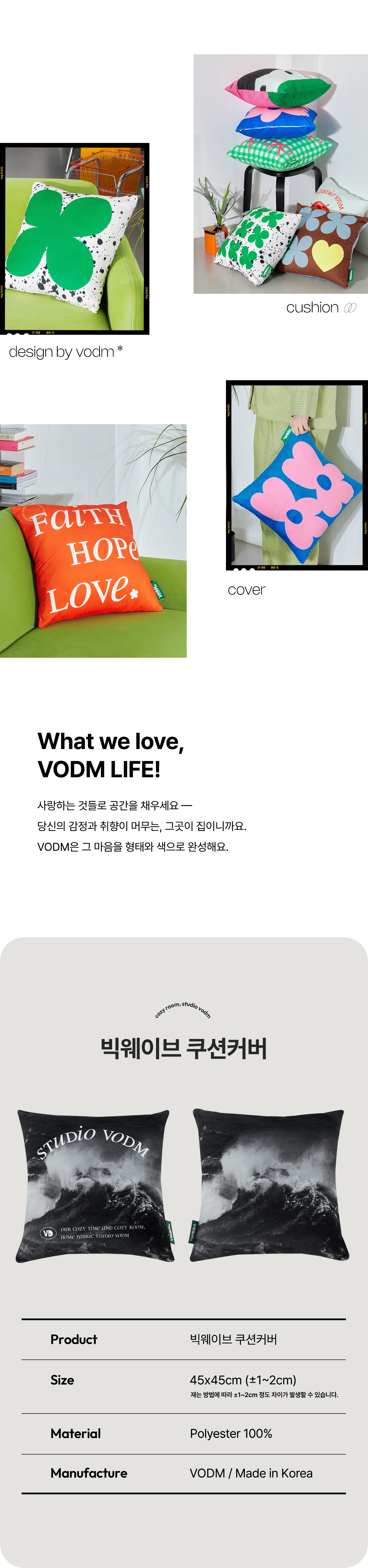 VODM가 제안하는 쿠션 커버입니다.