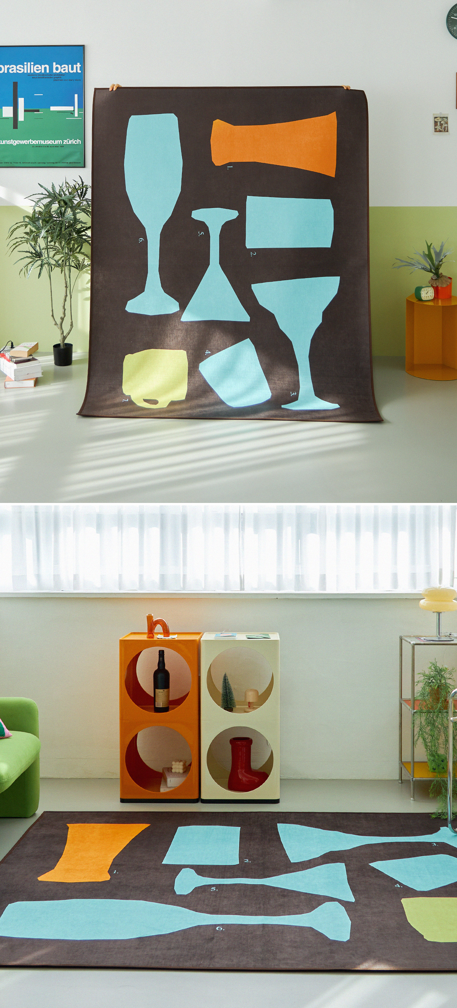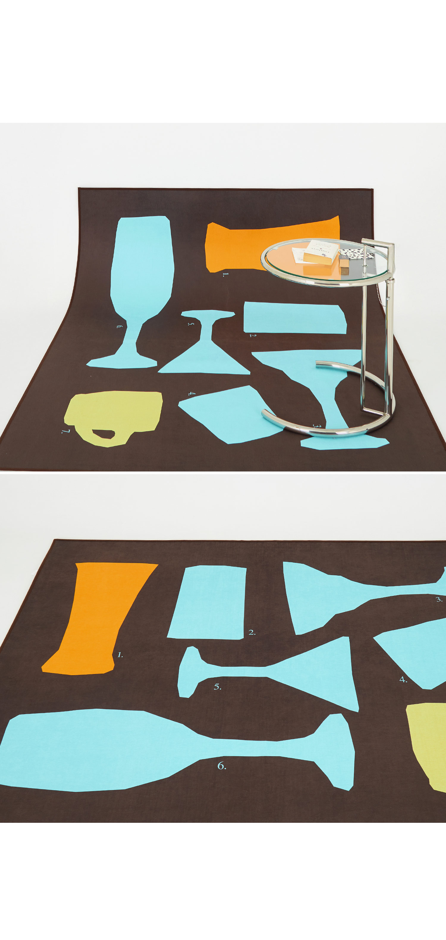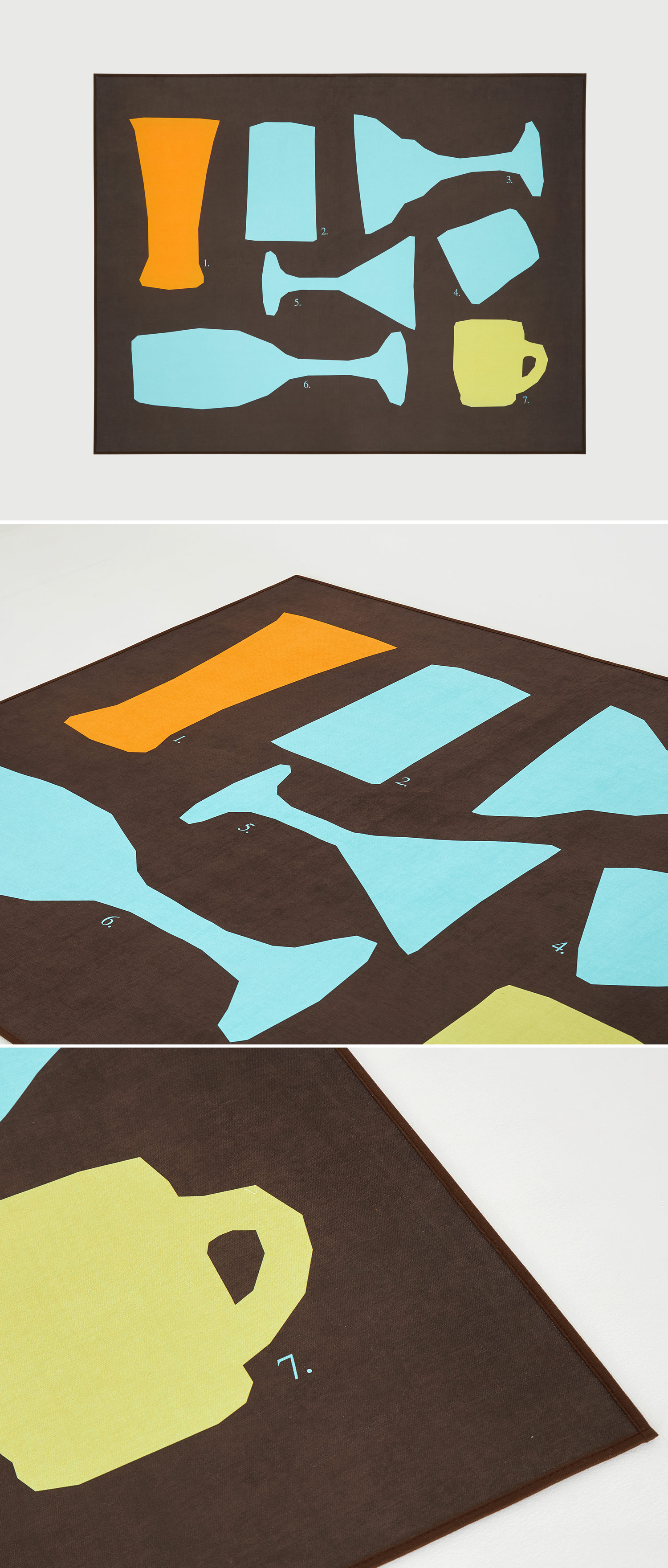 서로 다른 잔의 실루엣을 그래픽하게 배치한 패턴으로,